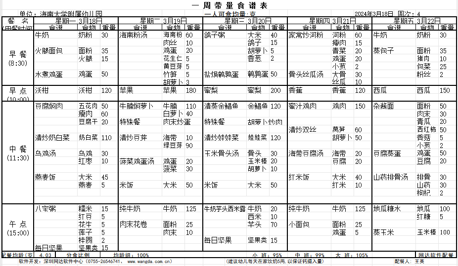 yl7703永利附属幼儿园2024年春季第四周食谱