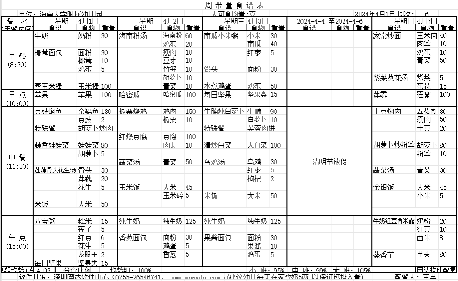 yl7703永利附属幼儿园2024年春季第六周食谱