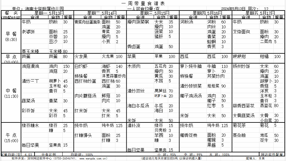 yl7703永利附属幼儿园2024年春季第十二周食谱