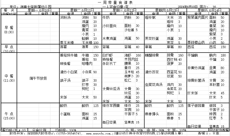 yl7703永利附属幼儿园2024年春季第十六周食谱