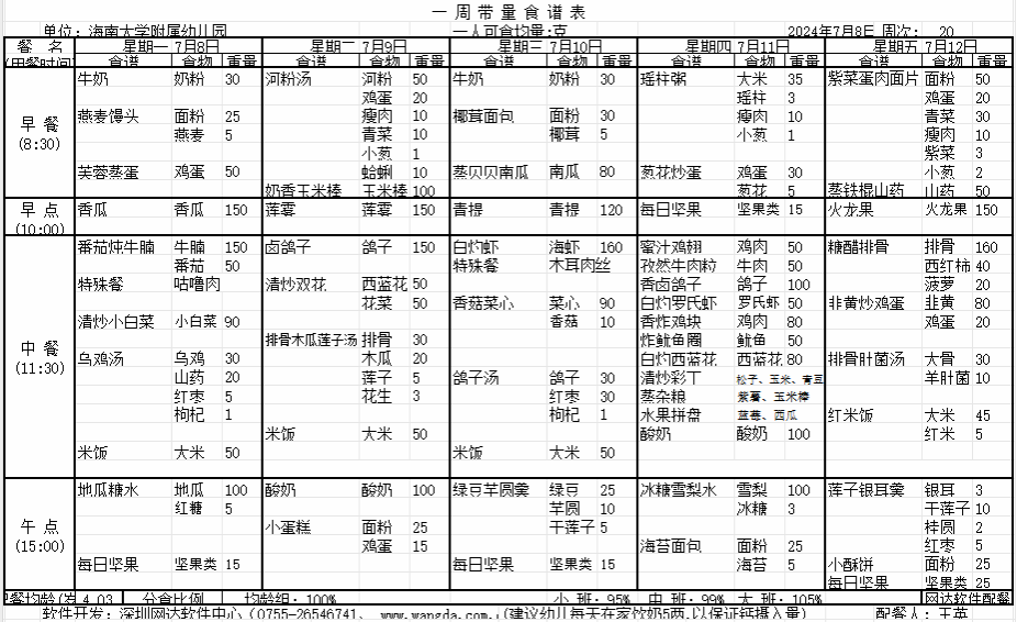 yl7703永利附属幼儿园2024年春季第二十周食谱
