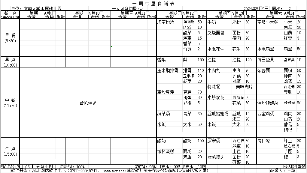 yl7703永利附属幼儿园2024年秋季第二周食谱公告