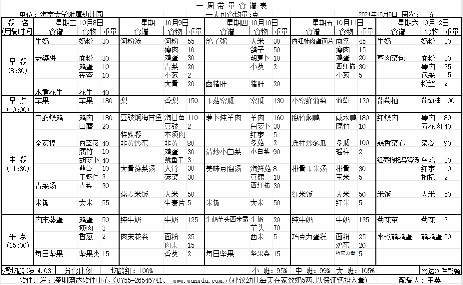 yl7703永利附属幼儿园2024年秋季第六周食谱