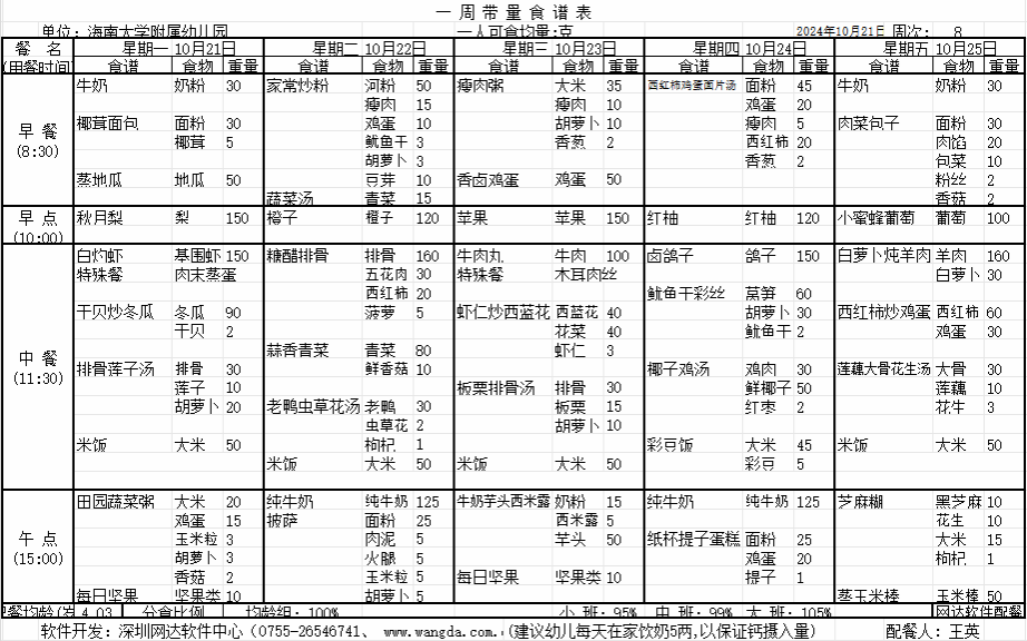 yl7703永利附属幼儿园2024年秋季第八周食谱