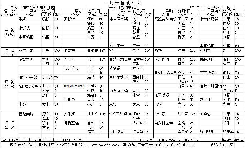 yl7703永利附属幼儿园2024年秋季第十周食谱