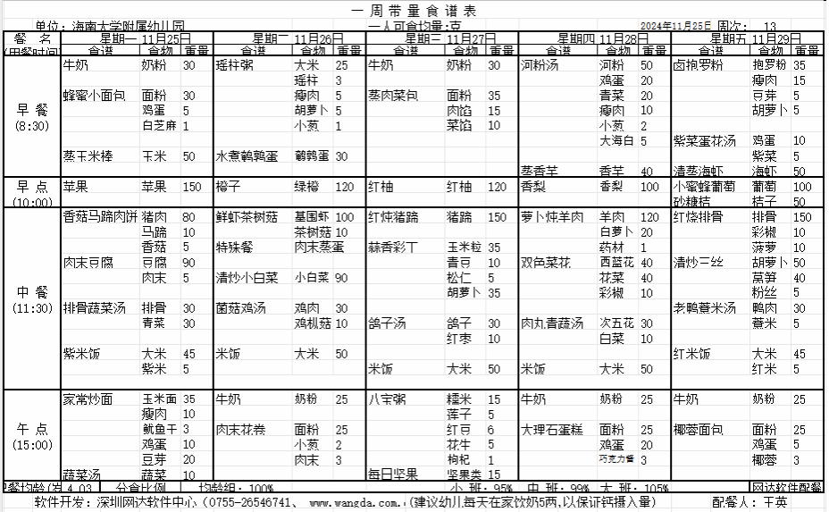 yl7703永利附属幼儿园2024年秋季第十三周食谱