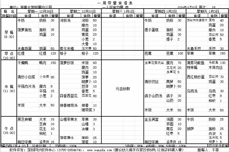 yl7703永利附属幼儿园2024年秋季第十八周食谱公告