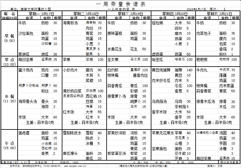 yl7703永利附属幼儿园2025年春季第五周食谱公告