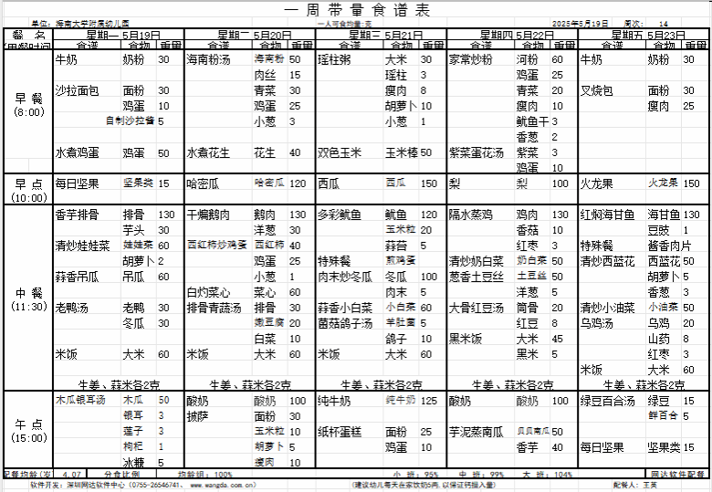 yl7703永利附属幼儿园2025年春季第十四周食谱