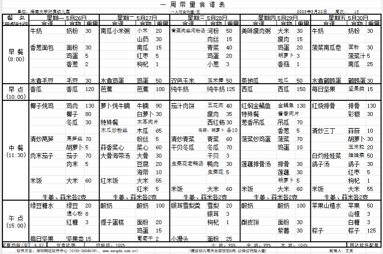 yl7703永利附属幼儿园2025年春季第十五周食谱