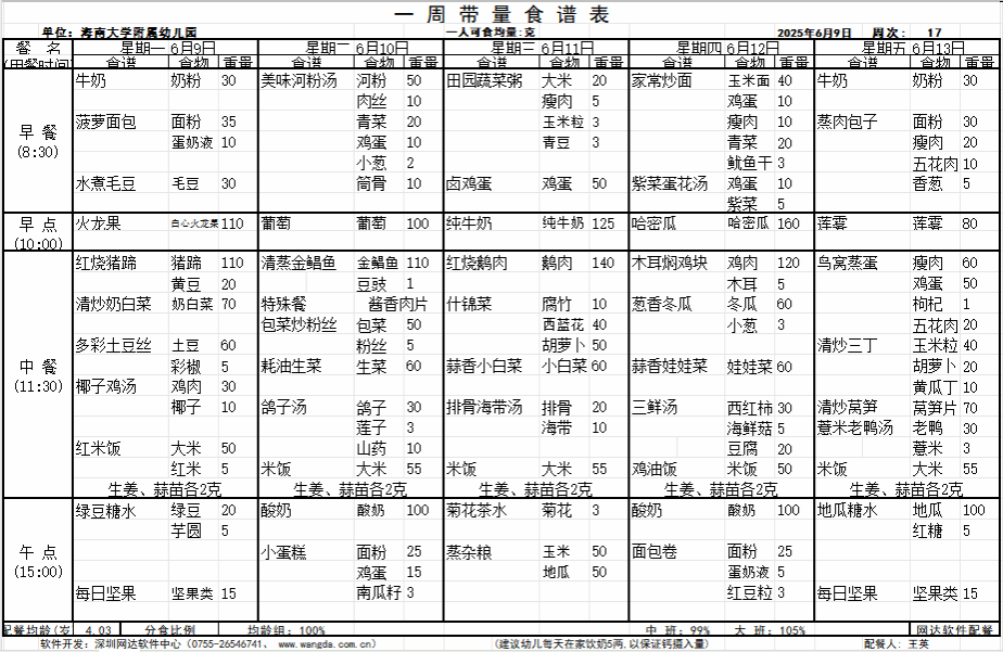 yl7703永利附属幼儿园2025年春季第十七周食谱