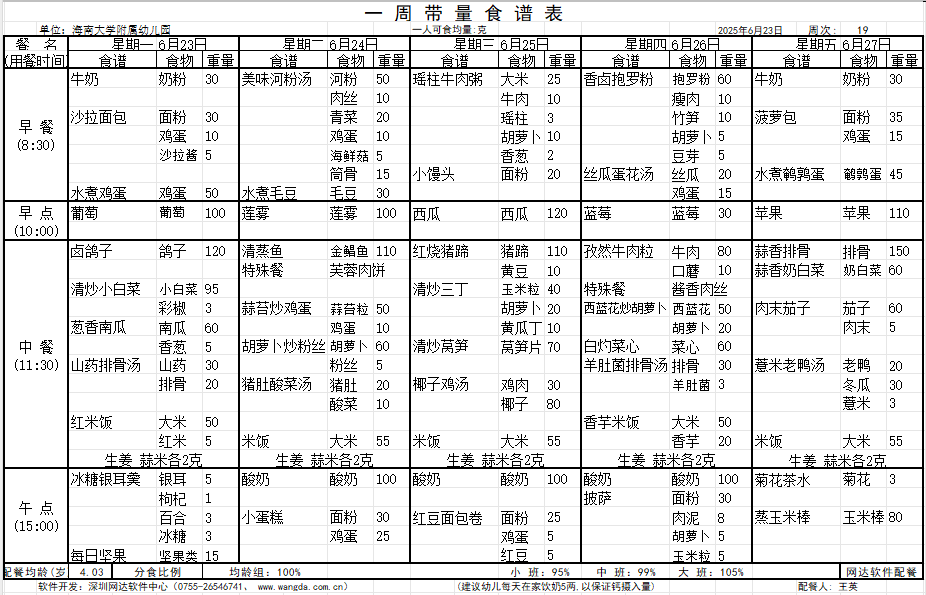 yl7703永利附属幼儿园2025年春季第十九周食谱公告