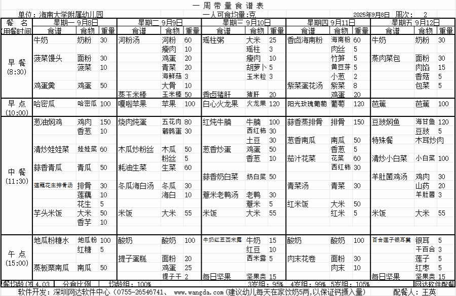 yl7703永利附属幼儿园2025年秋季第二周食谱公告