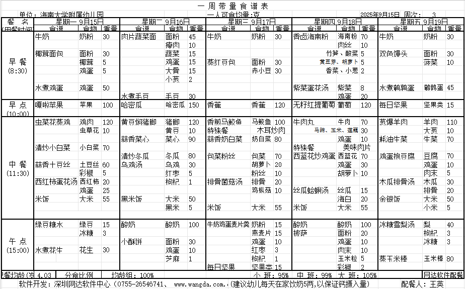 yl7703永利附属幼儿园2025年秋季第三周食谱公告