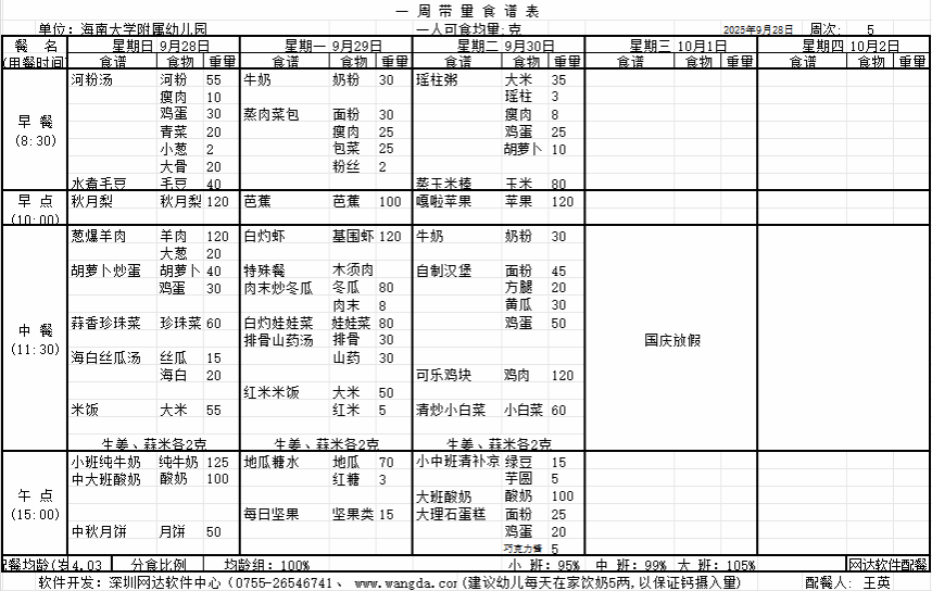 yl7703永利附属幼儿园2025年秋季第五周食谱公告